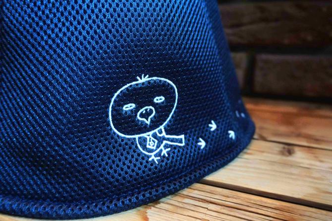 正面には、我らがドーミーイン・共立リゾートの宣伝部長「ドーミーいんこ」の刺繍と、DOMINISTOREではおなじみの赤いタグがアクセントに。