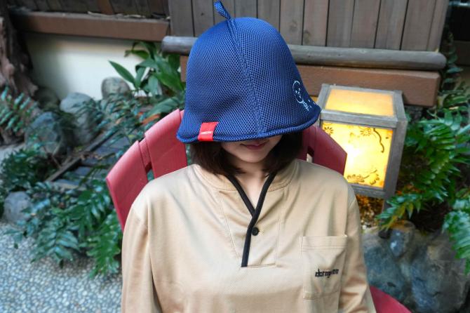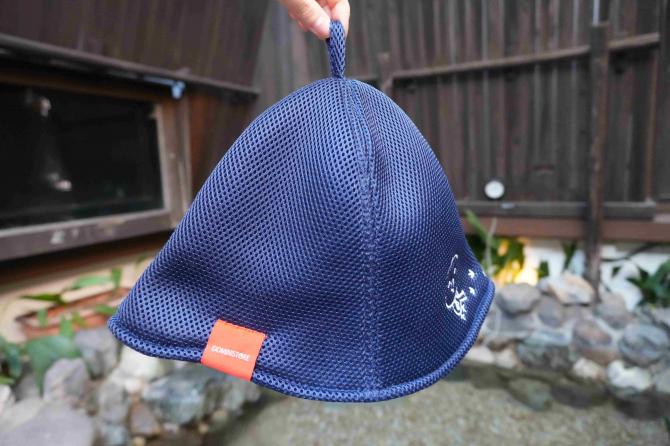 外気浴中の休憩タイムでも、深くかぶれば外光のまぶしさもカット。空気が動く音や風を感じながら、自然に身を任せた「ととのい」に没入することができます。